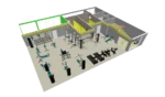 Комплект тренажеров с зоной функционального тренинга подойдет для коммерческих фитнес клубов с высокой проходимостью, а расстановка подготовлена с учетом строгого разделения по видам тренировок, группам мышц, видам тренажеров и зонам