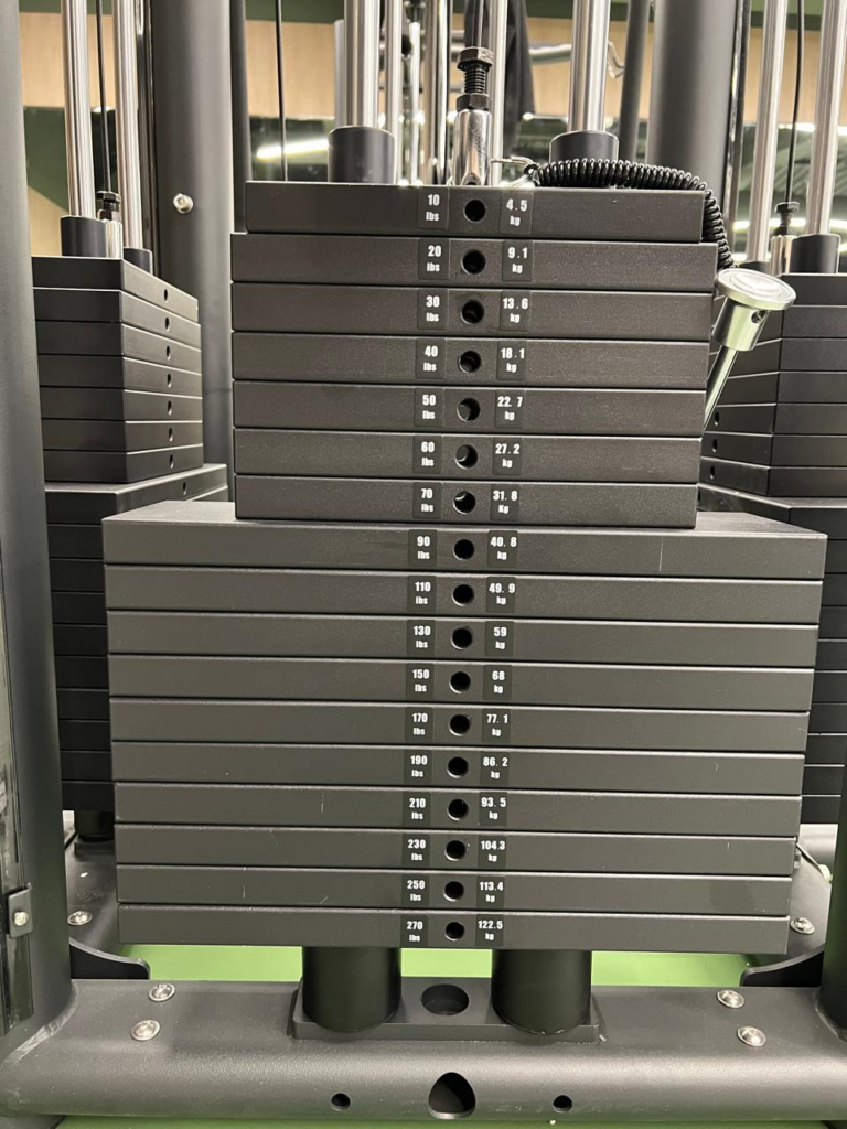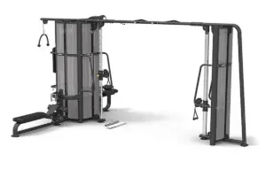 Тренажер сочетает надежность, безопасность и высокую функциональность. Прочная рама из стального профиля 80х80 мм (3 мм толщиной) и тросы 5 мм обеспечивают долговечность конструкции. Пять независимых весовых стеков по 122,5 кг каждый позволяют тренироваться одновременно нескольким пользователям или выполнять разнообразные упражнения без перенастроек.