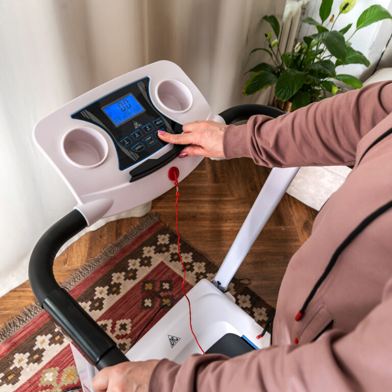 С двигателем 1,25 л.с. дорожка позволяет регулировать скорость от 0,8 до 10 км/ч, оптимально для ходьбы и легкого бега. Максимальный вес пользователя 120 кг, 10 встроенных амортизаторов гарантируют надежность и бережную нагрузку на суставы.