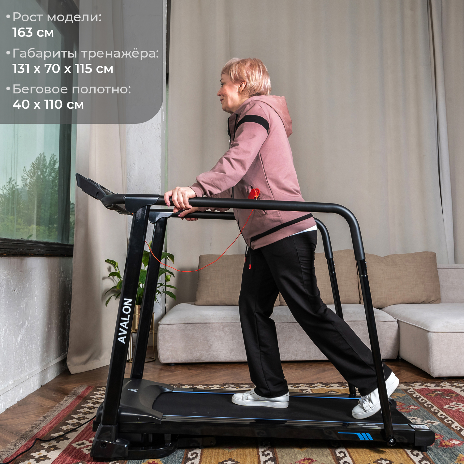 С двигателем 1,25 л.с. и скоростью от 0,8 до 10 км/ч, AVALON позволяет плавно регулировать интенсивность занятий. Максимальный вес пользователя до 120 кг обеспечивает надёжность. Компактные размеры (131 х 70 х 115 см) позволяют легко разместить тренажёр даже в небольшом пространстве.