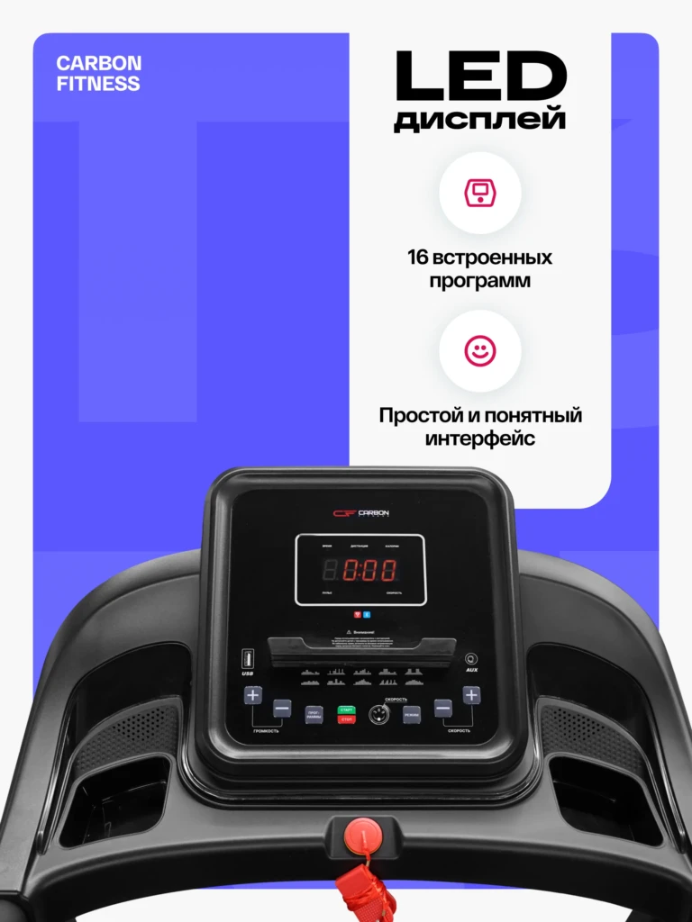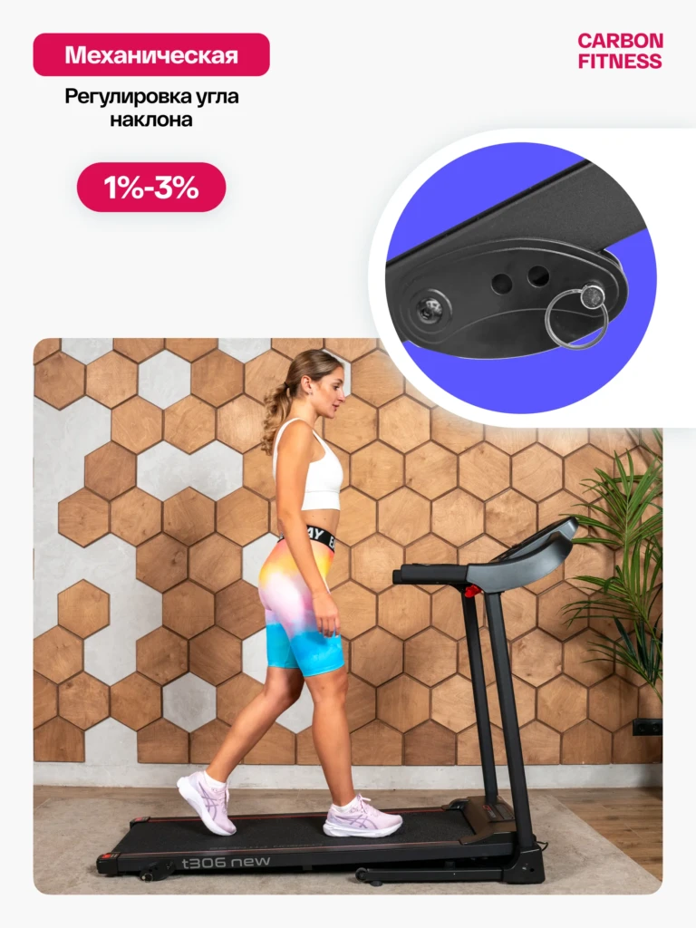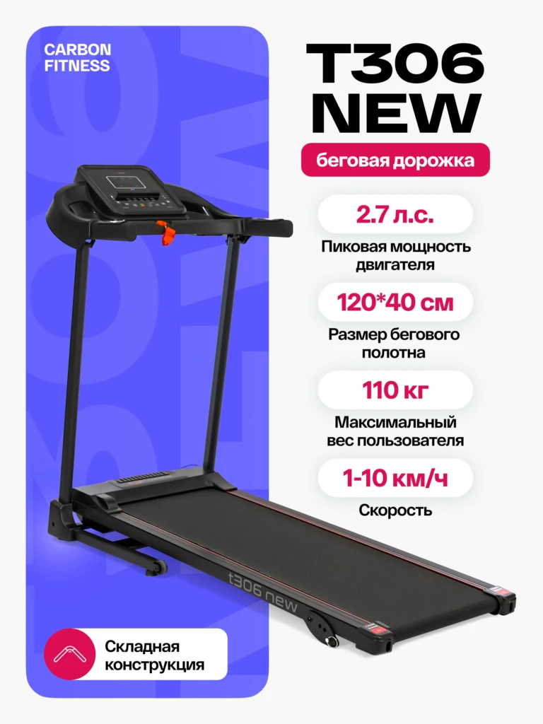 Беговая дорожка CARBON FITNESS T306 NEW – ваш надежный партнер для эффективных домашних тренировок, сочетающий комфорт, функциональность и безопасность.