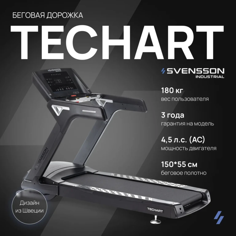 Представляем профессиональную беговую дорожку SVENSSON INDUSTRIAL TECHART – идеальное решение для профессионального и домашнего использования. Эта модель от Svensson Industrial сочетает в себе высокое качество, передовые технологии и безупречную функциональность, обеспечивая надёжность и долговечность.
