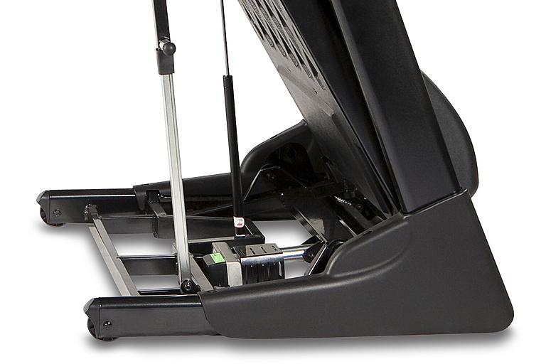 Мощный двигатель в 2,75 л.с. обеспечивает плавный и стабильный ход на скоростях до 18 км/ч, а электронная регулировка угла наклона до 12 уровней позволит имитировать бег по пересеченной местности, эффективно нагружая мышцы и сжигая калории. Информативный 6,5-дюймовый LCD-дисплей с подсветкой четко отображает все параметры тренировки: время, скорость, расстояние, калории и пульс, который считывается с датчиков на рукоятках.
