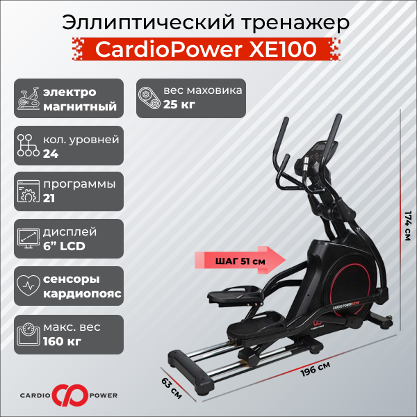 CardioPower XE100 — это профессиональное качество тренировок и путь к вашим фитнес-целям прямо у вас дома, обеспечивающий безопасность и удовольствие от каждого шага.