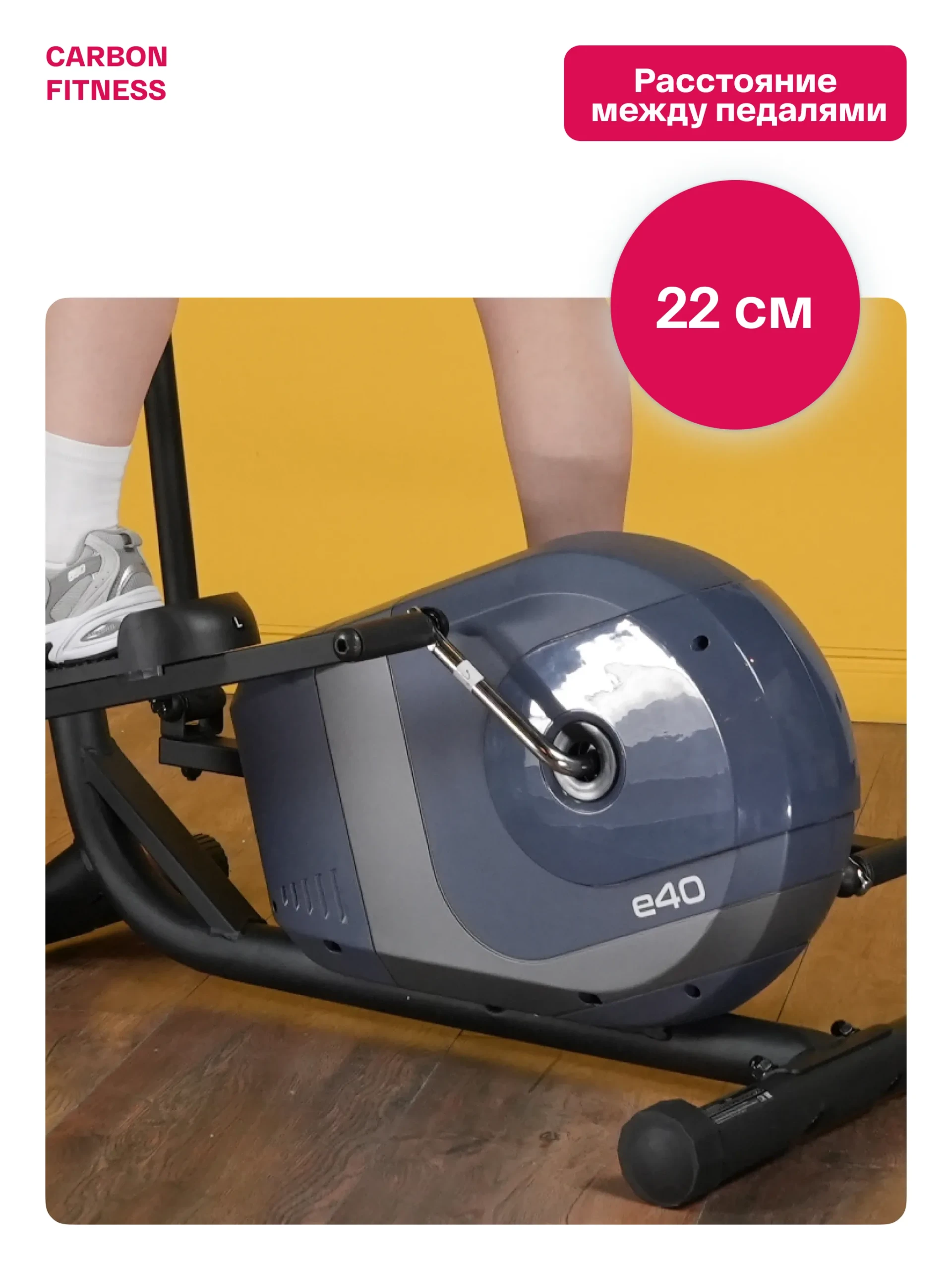 Модель E40 оснащена надежной магнитной системой с 8 уровнями нагрузки и инерционным маховиком BioFusion™ весом 15 кг, что гарантирует плавное и тихое движение. Оптимальные параметры шага (340 мм) и расстояния между педалями (220 мм) обеспечивают естественную биомеханику и максимальный комфорт. Тренажер выдерживает пользователей до 120 кг, подтверждая свою надежность. Полностью автономен и не требует подключения к сети, что удобно для его размещения в любом уголке дома.