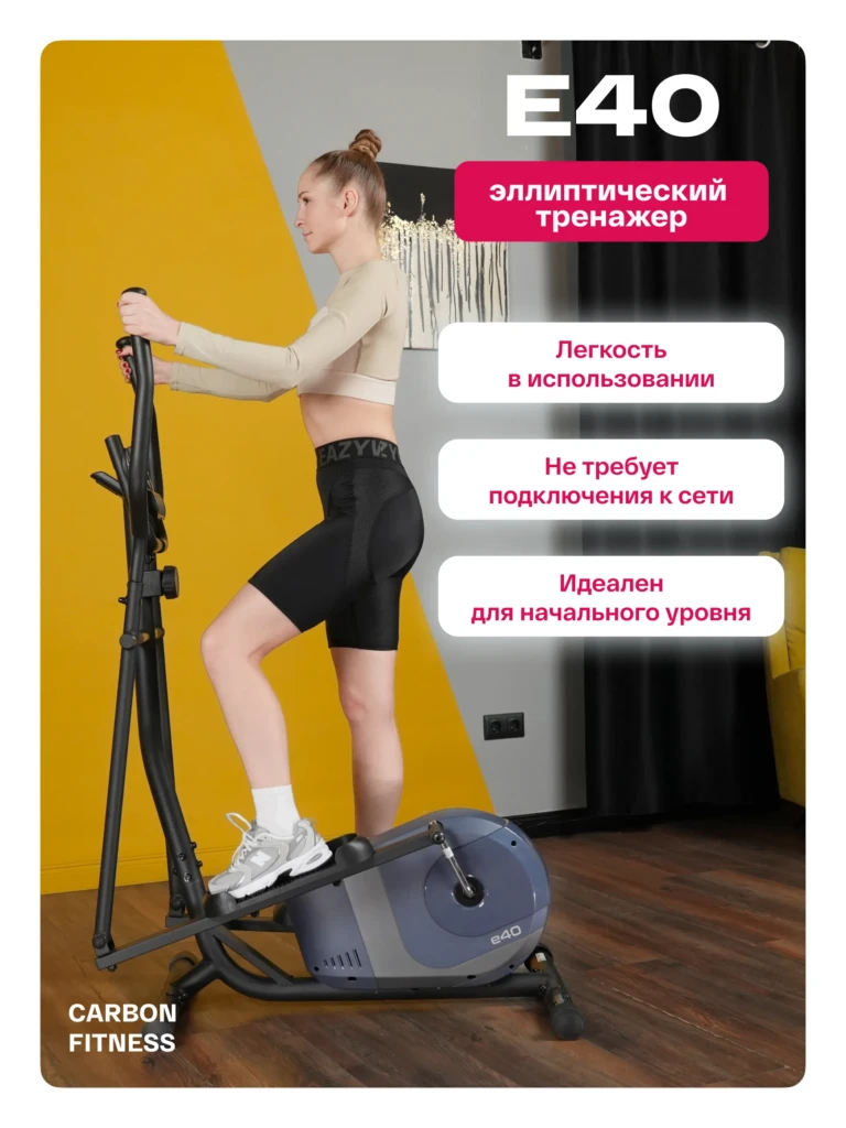 Эллиптический тренажер CARBON FITNESS E40 — ваш домашний помощник для эффективного кардио и проработки мышц. Он обеспечивает мягкую нагрузку на суставы, помогая повысить выносливость и сжечь калории. Идеален для поддержания формы и комфортных тренировок дома, подходит как для новичков, так и для опытных пользователей.
