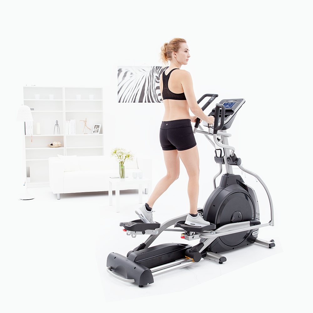 Тренажер обеспечивает комфорт и безопасность. Бесшумная магнитная система с электронной регулировкой гарантирует плавный ход. Длина шага 508 мм, Q-фактор 6 см и амортизирующие педали создают естественную биомеханику, минимизируя нагрузку на суставы. Конструкция выдерживает до 180 кг, подтверждая надежность.
