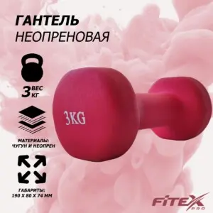 Гантель Fitex Pro FTX-2015-3kg весом 3 кг в неопреновой оболочке – ваш надежный помощник для эффективных тренировок. Этот универсальный снаряд создан для комфортных и безопасных занятий дома или в коммерческом зале, идеально подходит для достижения различных фитнес-целей.