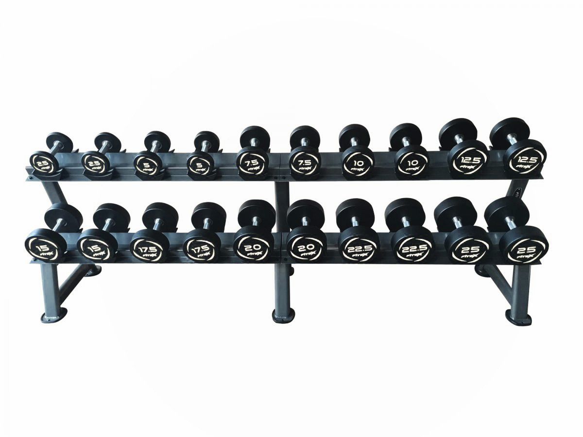 - Широкий диапазон: 10 пар гантелей (2,5-25 кг) для постепенного прогресса.