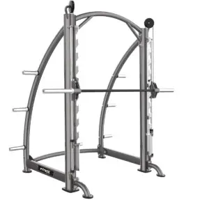 Благодаря прочной конструкции из стали и допустимой нагрузке до 200 кг, машина гарантирует стабильность и долговечность. Встроенная система противовеса обеспечивает плавное и комфортное движение грифа. Ваша безопасность — наш приоритет: тренажер оснащен нержавеющими крюками-ловушками 8 мм и страховочными ограничителями хода грифа.