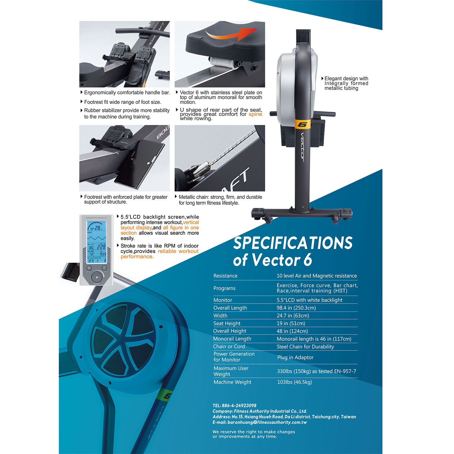 Гребной тренажер Body Craft Vector 6 – идеальное решение для эффективных домашних тренировок, прорабатывающих все основные группы мышц. Он сочетает надежность, комфорт и функциональность, обеспечивая полноценную кардионагрузку и развитие выносливости. Аэромагнитная система с 10 уровнями электронной регулировки гарантирует плавное и бесшумное движение. Эргономичное сидение и педали с фиксирующими ремнями обеспечивают безопасность. Консоль с 5,5-дюймовым LCD-экраном отображает все ключевые параметры, а 9 встроенных программ внесут разнообразие в занятия. Тренажер выдерживает пользователей до 150 кг.