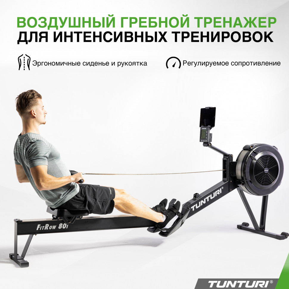 Гребной тренажер Tunturi FitRow 80i – это превосходный выбор для тех, кто стремится к эффективным и полноценным тренировкам всего тела, не выходя из дома или желает оснастить свой фитнес-зал качественным оборудованием. Благодаря воздушной системе сопротивления, этот тренажер обеспечивает плавную и естественную нагрузку, имитируя греблю на воде.
