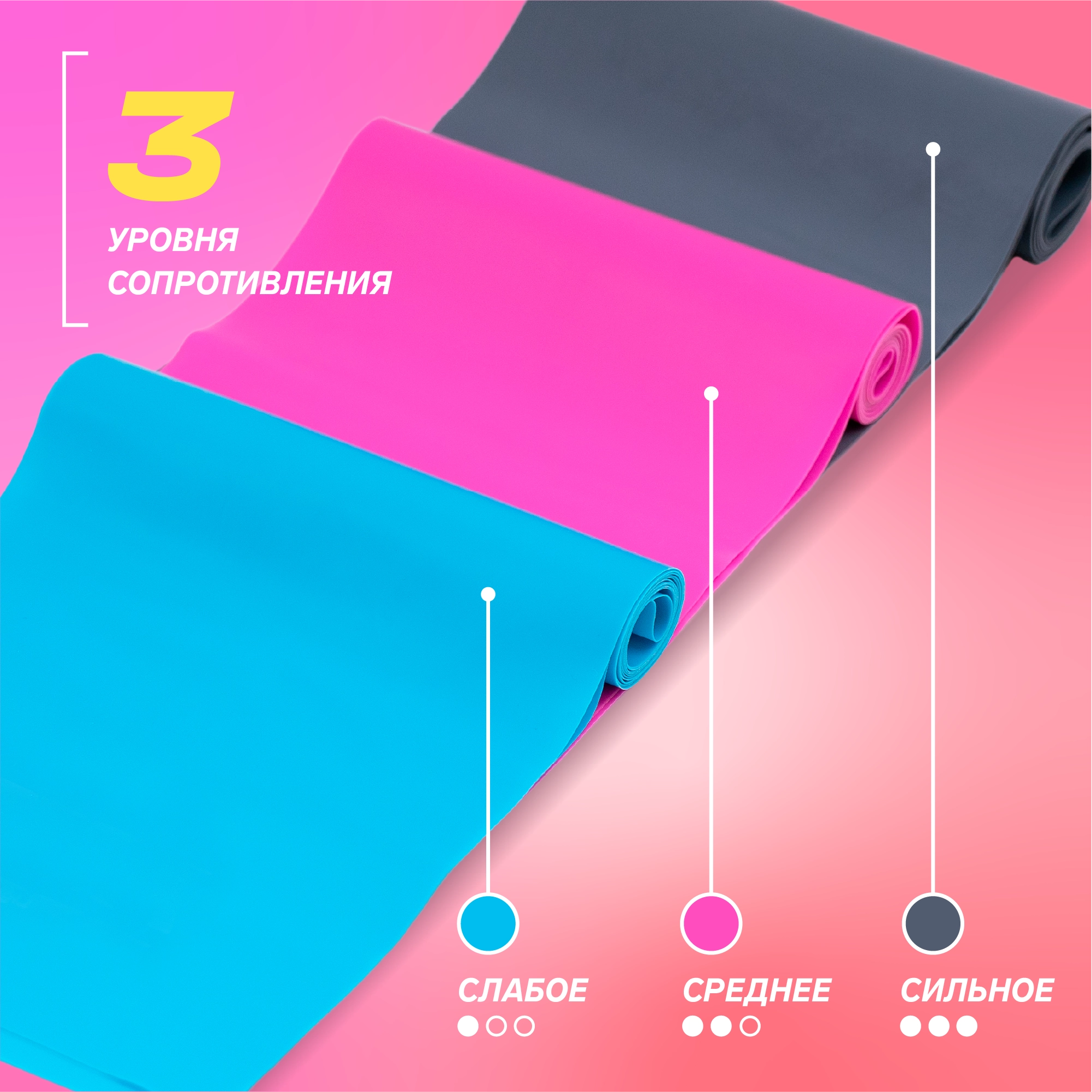 Разные уровни сопротивления: ленты голубого, розового и серого цвета для регулировки нагрузки.