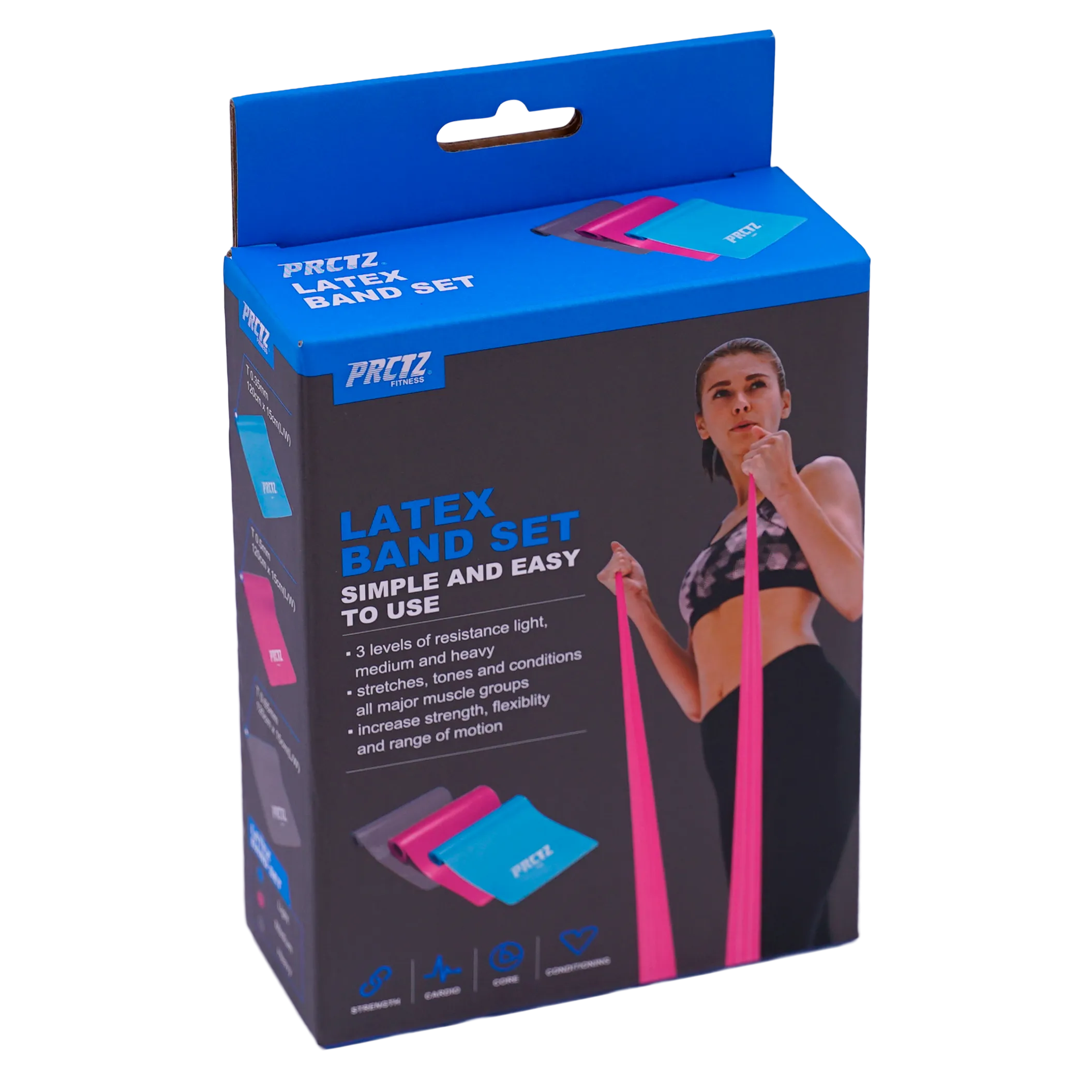Натуральный латекс обеспечивает долговечность и эластичность каждой ленты. Легкие и компактные, они идеальны для путешествий или занятий на свежем воздухе. Выполняйте разнообразные упражнения на все группы мышц с PRCTZ LATEX BAND SET.
