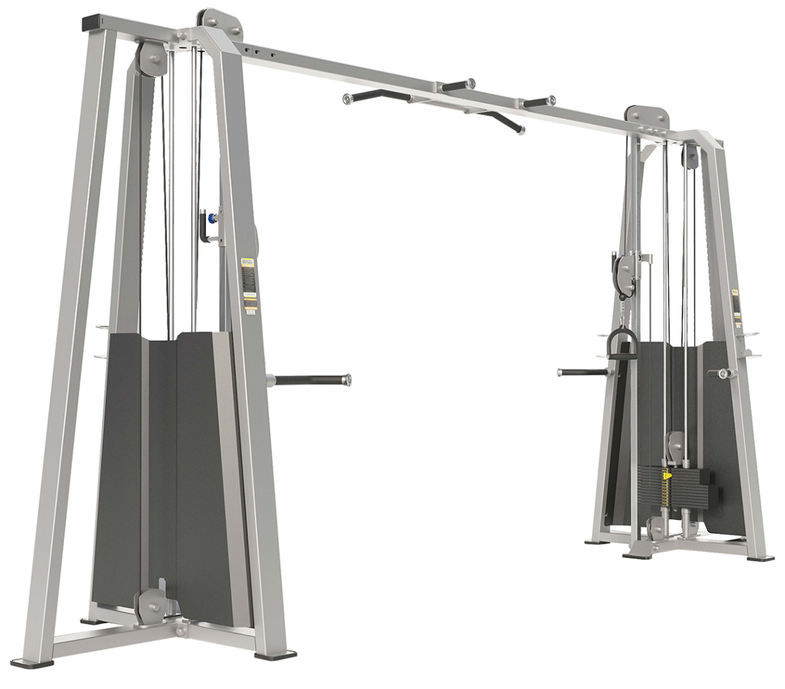 Усиленная рама и внушительный вес гарантируют устойчивость при нагрузках. Два весовых стека по 100 кг позволяют точно регулировать нагрузку, а высококачественный трос в PVC оплетке обеспечивает плавность движений. Изменяемая высота блоков делает кроссовер универсальным для множества упражнений.
