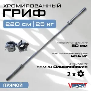 Представляем олимпийский гриф L001.1 от Тренажеры V-SPORT – идеальное решение для полноценных силовых тренировок как дома, так и в профессиональном тренажерном зале. Этот хромированный гриф длиной 2200 мм разработан для максимальной эффективности и безопасности, помогая вам достигать новых высот в развитии силы и выносливости. Он станет незаменимым инструментом для спортсменов любого уровня подготовки, стремящихся к совершенству своего тела.