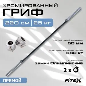 Модель L001, длиной 2200 мм и весом 25 кг, выдерживает впечатляющую нагрузку до 680 кг, подходя для самых серьезных атлетов. Хромированное покрытие гарантирует долговечность и защиту от коррозии. В комплекте идут надежные замки для мгновенной и безопасной фиксации дисков.