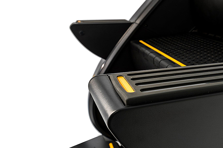 • Комфорт обеспечивают встроенный вентилятор, удобный держатель для бутылки и полка для мобильных устройств.