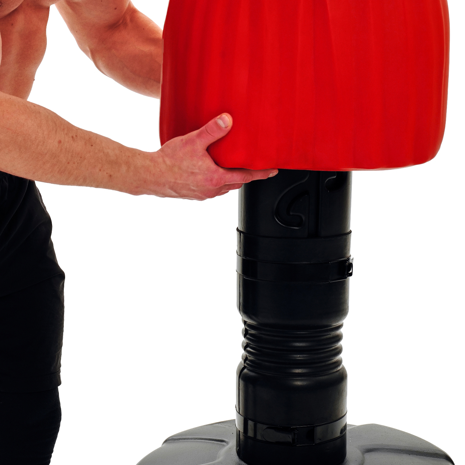 Манекен легко адаптируется под ваш рост благодаря регулировке от 162 до 183 см. Основание объемом 100 литров, заполняемое водой или песком, гарантирует устойчивость при самых интенсивных ударах. Реалистичная форма и красный цвет вдохновят на продуктивные тренировки, улучшая технику ударов руками и ногами.
