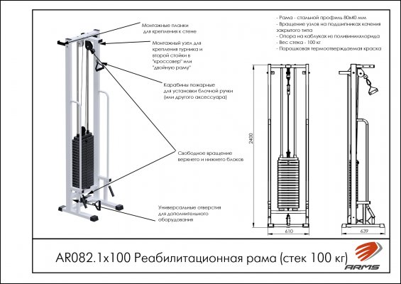 Реабилитационная рама Arms AR082.1х100 со стеком 100кг — это универсальное оборудование для эффективных тренировок и восстановления. Идеально подходит как для домашних, так и для коммерческих залов, обеспечивая безопасность, удобство и функциональность.
