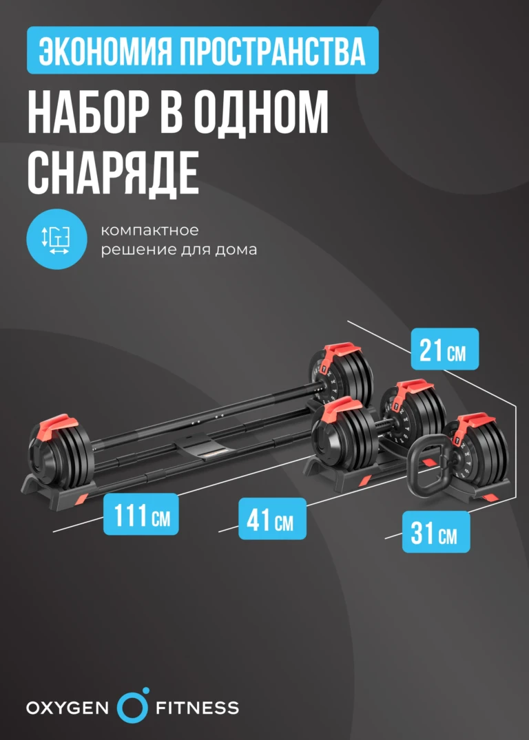 Экономия места: Компактный размер (111х21×21 см в рабочем состоянии) и регулируемый вес позволяют заменить несколько снарядов, освобождая пространство.