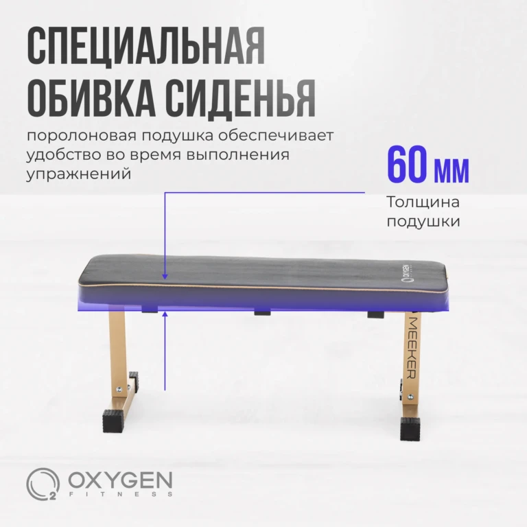 Силовая скамья прямая домашняя OXYGEN FITNESS MEEKER – ваш ключ к эффективным тренировкам рук, груди, плеч и торса прямо у вас дома. Эта скамья разработана для обеспечения максимального комфорта и безопасности, становясь надёжным партнером для ваших силовых занятий.
