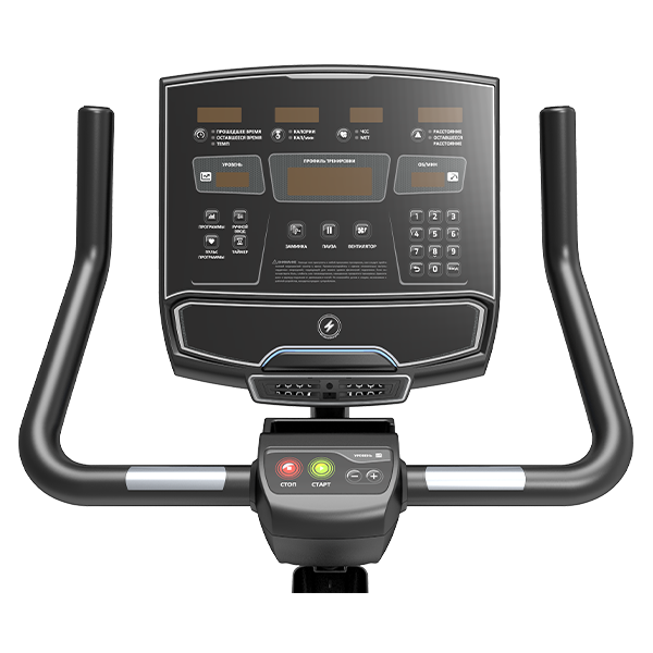 UBS8.0 оснащён электромагнитной системой с 25 уровнями нагрузки для плавной и бесшумной работы. Встроенный генератор класса А обеспечивает полную автономность – никаких проводов! Регулируемые сиденье и руль подстроятся под любого пользователя. Информативный LED-дисплей с русским интерфейсом покажет время, дистанцию, скорость, калории, пульс. Сенсоры пульса и кардиопояс помогут контролировать эффективность.