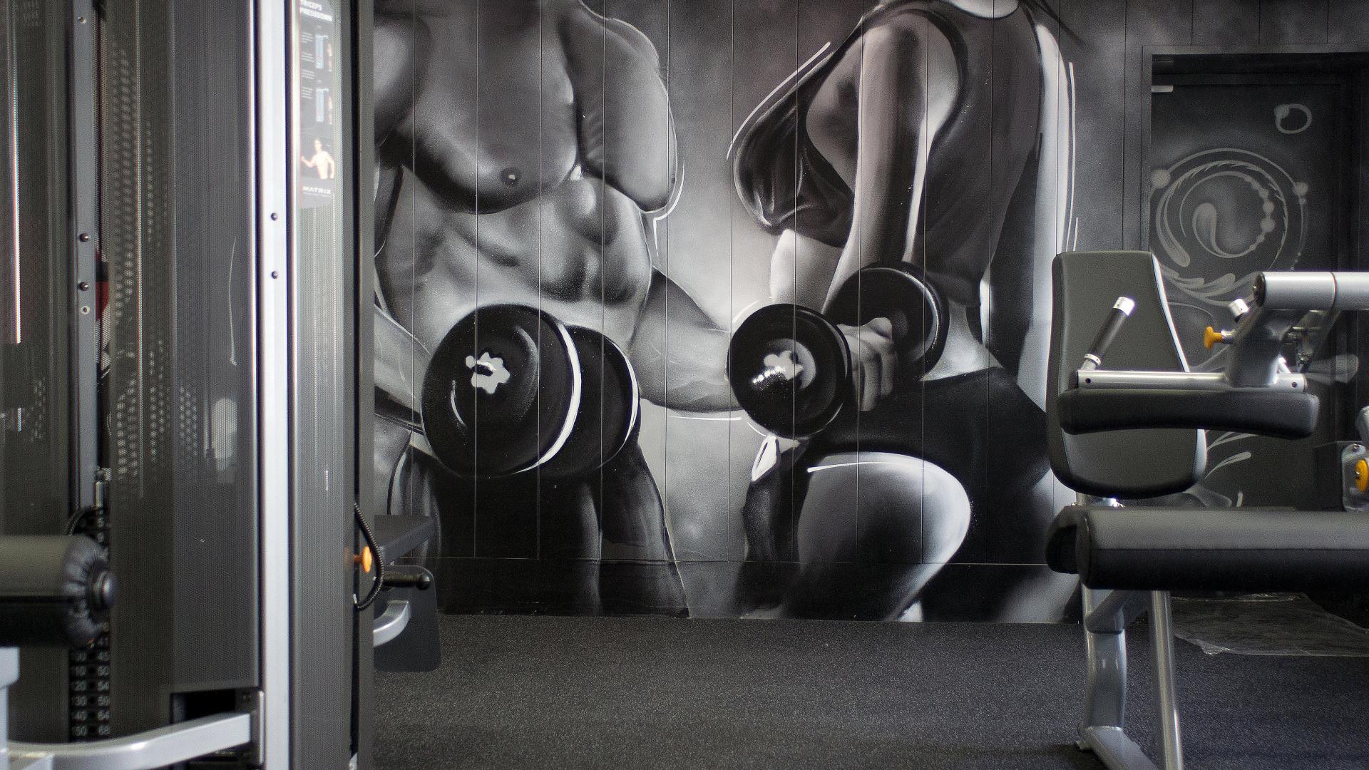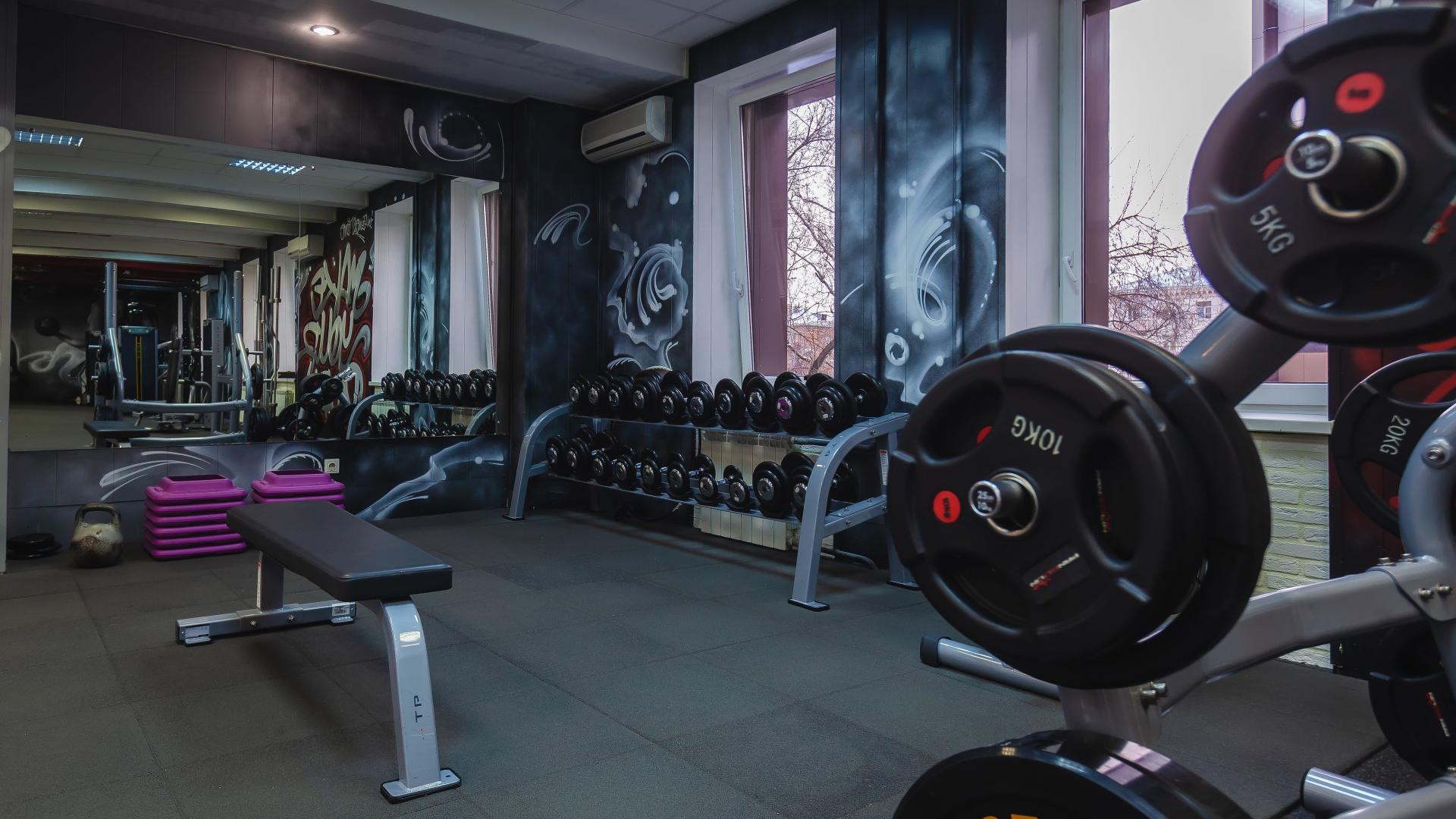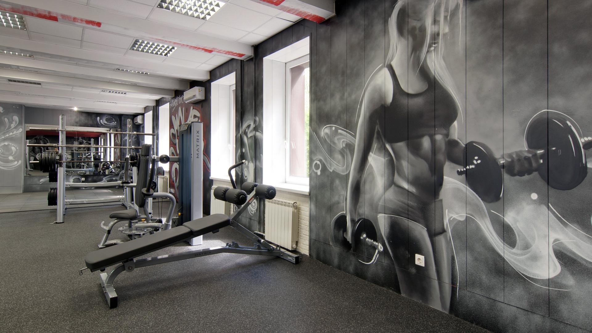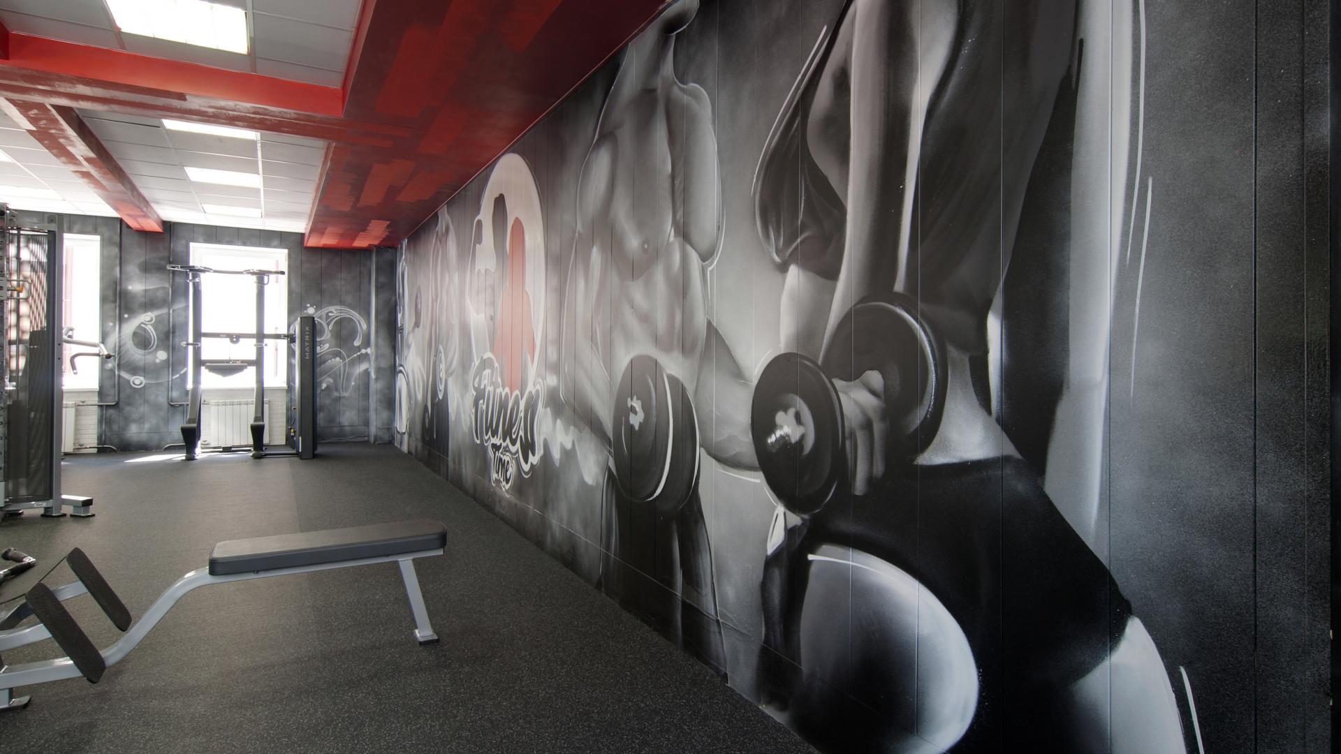 Яркие граффити на стенах добавили индивидуальности и энергии интерьеру, подчёркивая спортивный характер клуба.