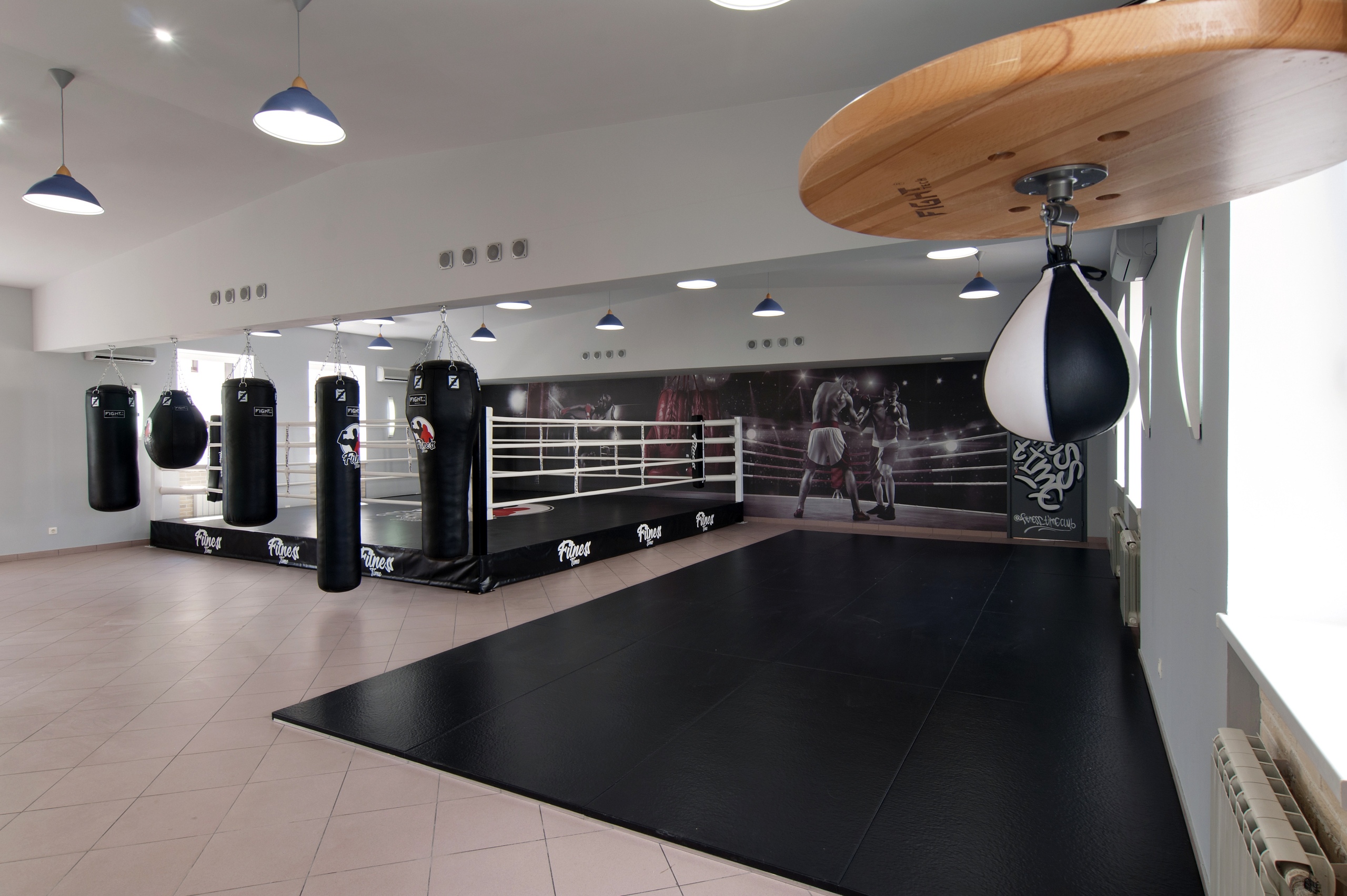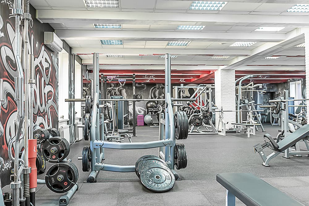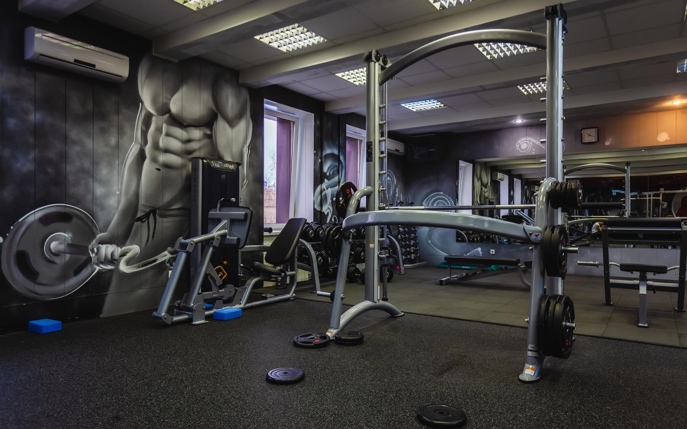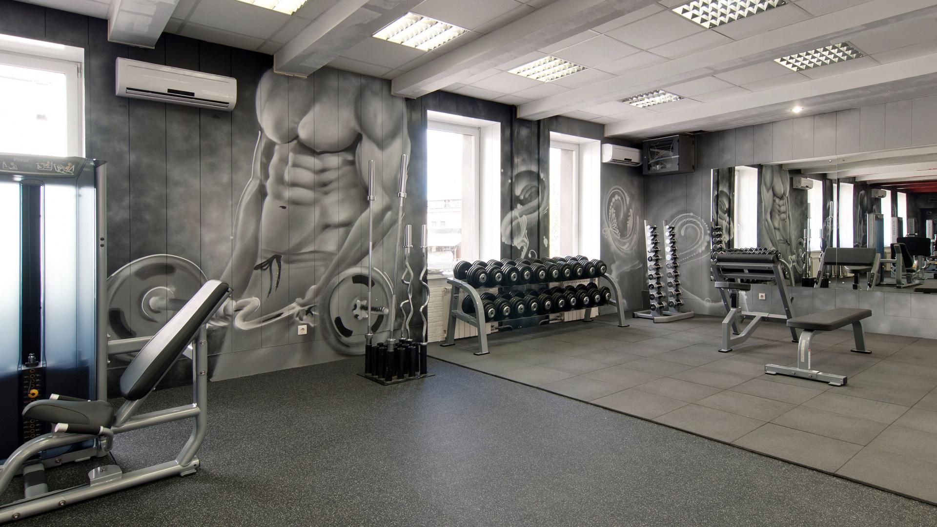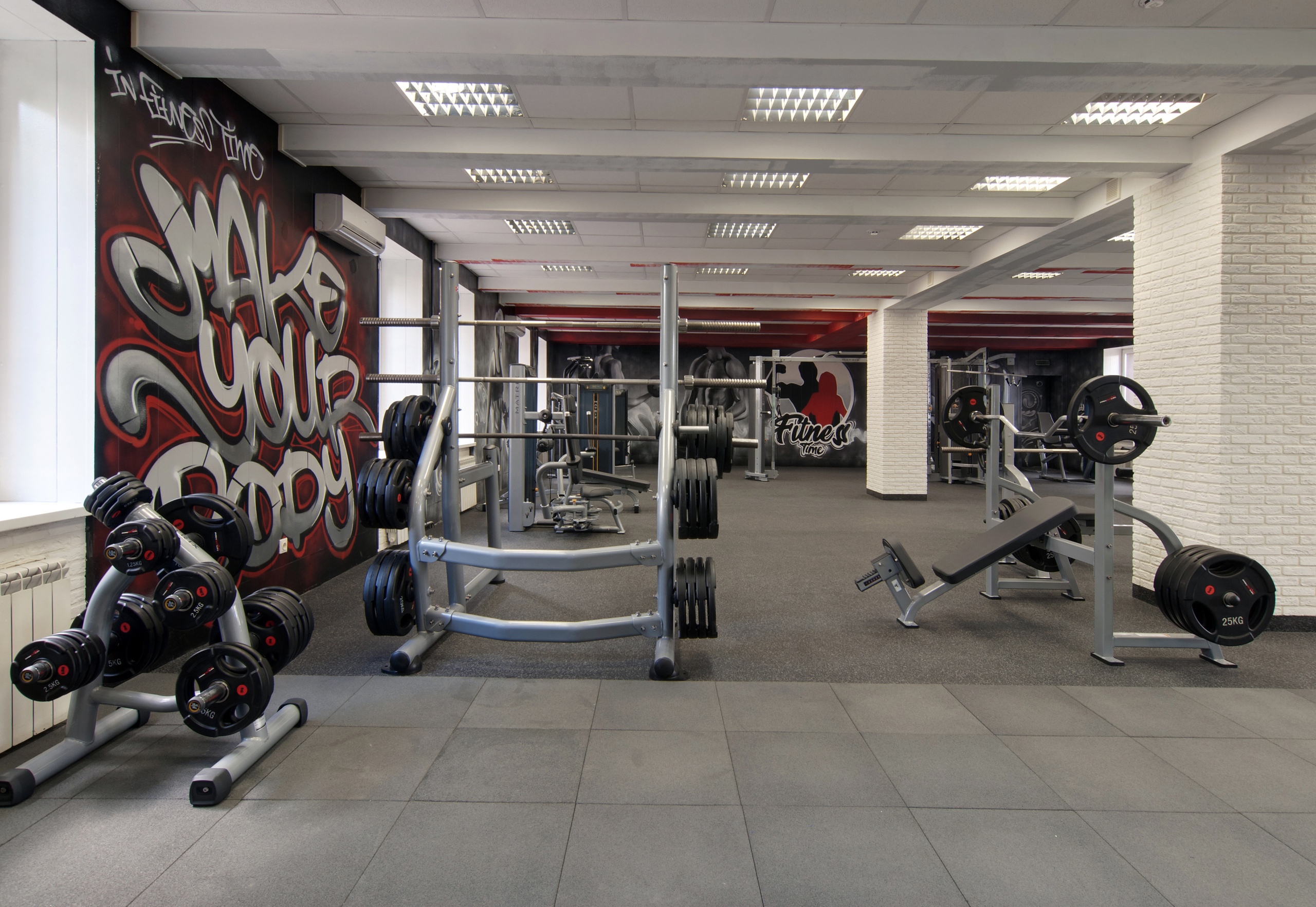 Яркие граффити на стенах добавили индивидуальности и энергии интерьеру, подчёркивая спортивный характер клуба.