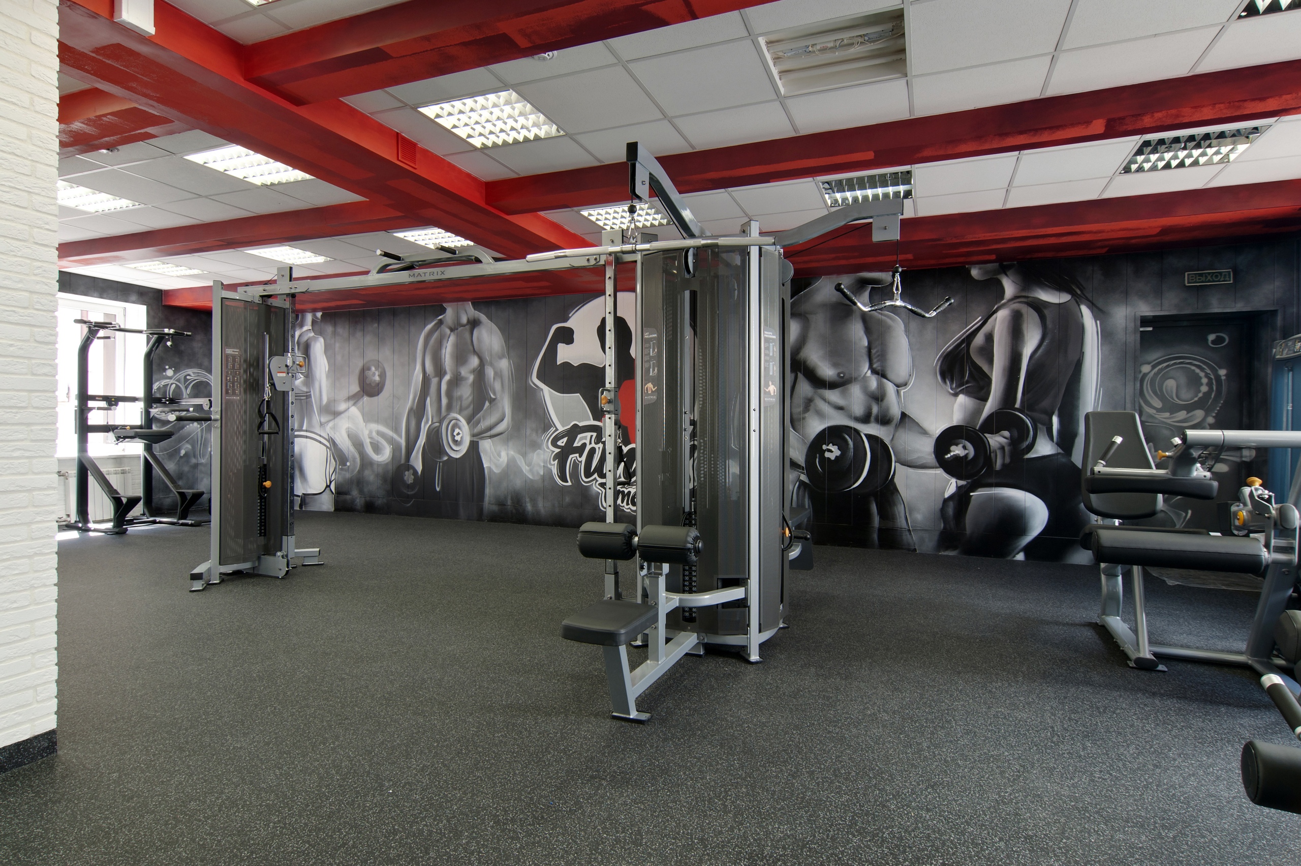 На площади фитнес-центра создано стильное и динамичное пространство, в котором сочетаются премиальный уровень оборудования, продуманная эргономика и запоминающийся визуальный стиль.